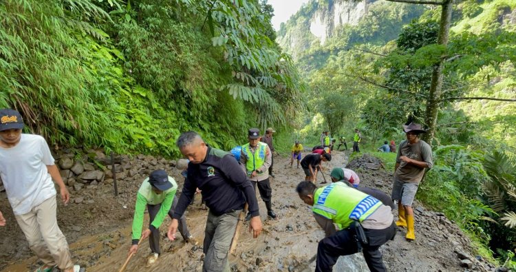 Kapolsek menyampaikan ucapan terima kasih kepada seluruh pihak yang terlibat dalam penanganan tanah longsor. Dengan kerja bakti yang dilakukan dapat mempercepat proses penanganan.